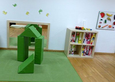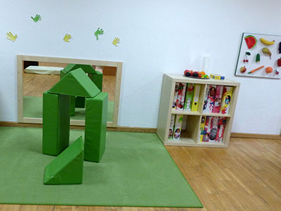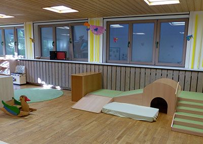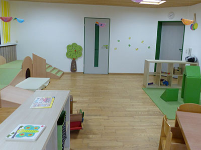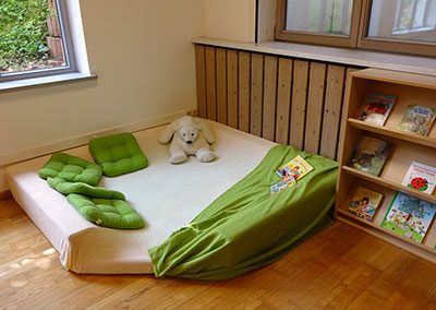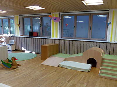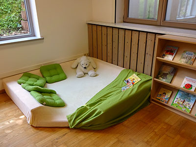 Gruppenraum mit angegliedertem Schlafraum * Kuschelnest & Leseecke * Spielpodest * Bauecke * Hängeschaukel & Wandkugelbahn