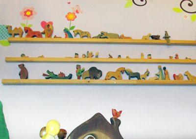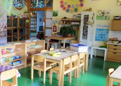 Die drei Gruppen Igel, Schmetterlinge und Marienkäfer haben jeweils einen eigenen Gruppenraum mit Ruhezonen, Spiel- und Pausenbereichen sowie Waschbecken und Teeküche.