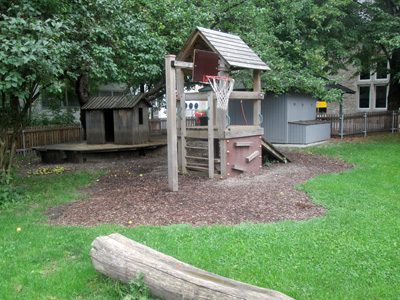 Der große Garten wird von den Kindergartengruppen und den Kleinkindgruppen gemeinsam genutzt.