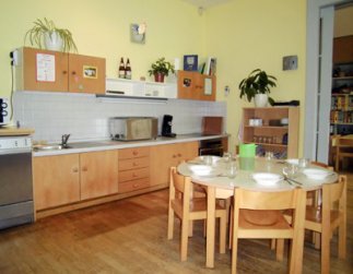 In diesem Raum findet die gleitende Brotzeit statt. (Gruppengefühl, Gespräche, Tischregeln, Essenskultur, Hungergefühl … entwickelt sich.)